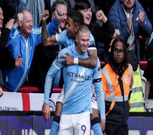 在今天晚上进行的英超第7轮曼城客场对阵布伦特福德的比赛中,哈兰德在第9分钟打入进球,帮助球队取得领先。