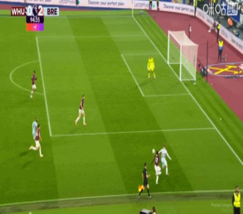 第90+4分钟,门将凯莱赫大脚策动进攻,刘易斯·波特下底回做助攻,延森稍作调整爆射入网,布伦特福德2比0锁定胜局。